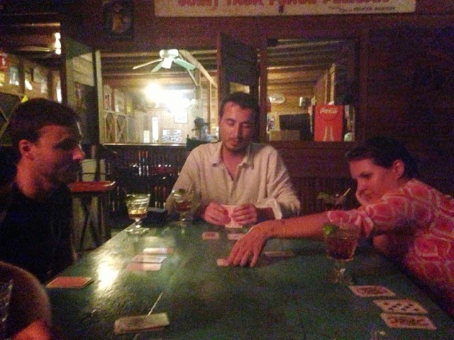 It was still an opportunity to be social and meet new friends. Slightly running across the field, I approach the restaurant and I walk up the stairs. They don't need to be pointed out to me because I see them sitting in front of me playing cards.